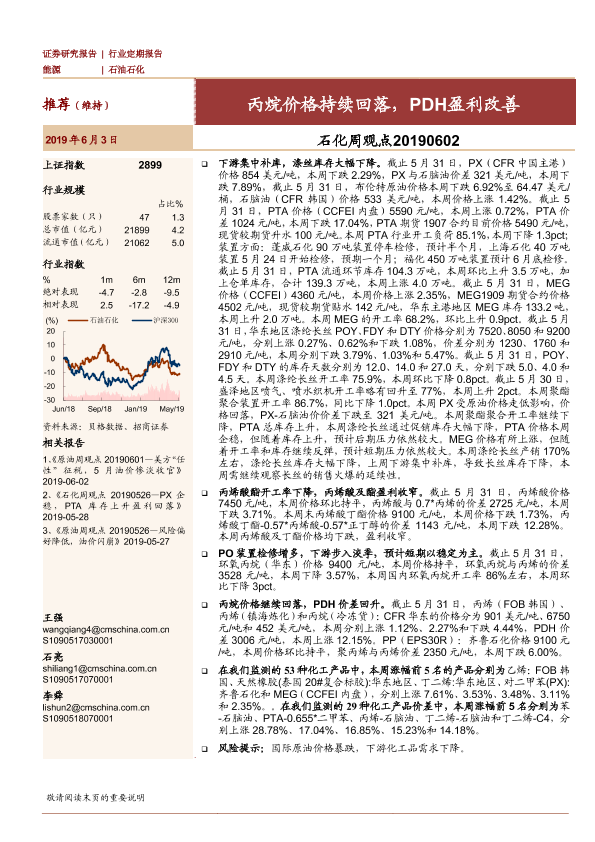 【海通证券】【20190603】石化周观点:丙烷价格持续回落,PDH盈利改善-17页