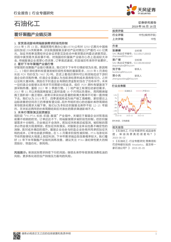 【天风证券】【20190616】20190616-天风证券-石油化工行业专题研究:看好聚酯产业链反弹-7页