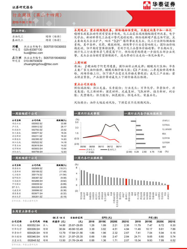 【华泰证券】【20190616】20190616-华泰证券-石油化工行业周报(第二十四周)-13页