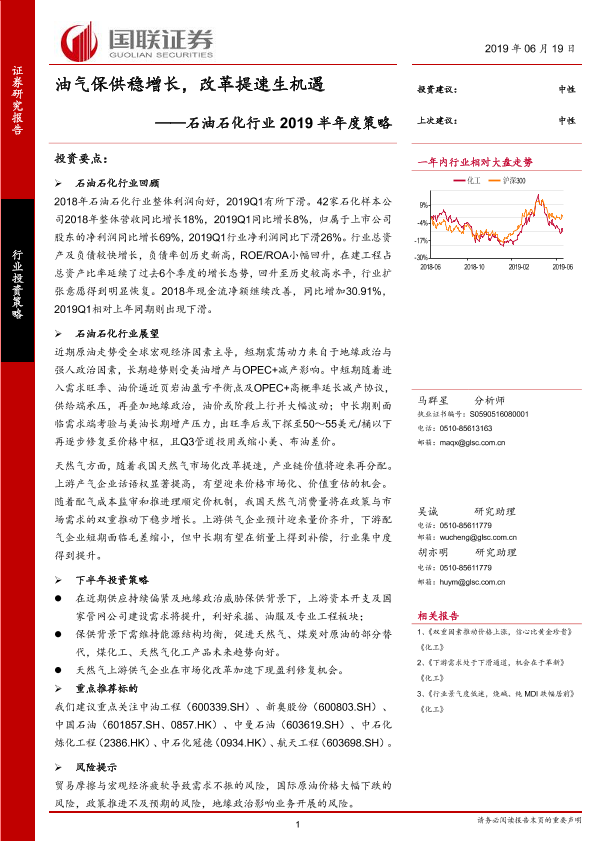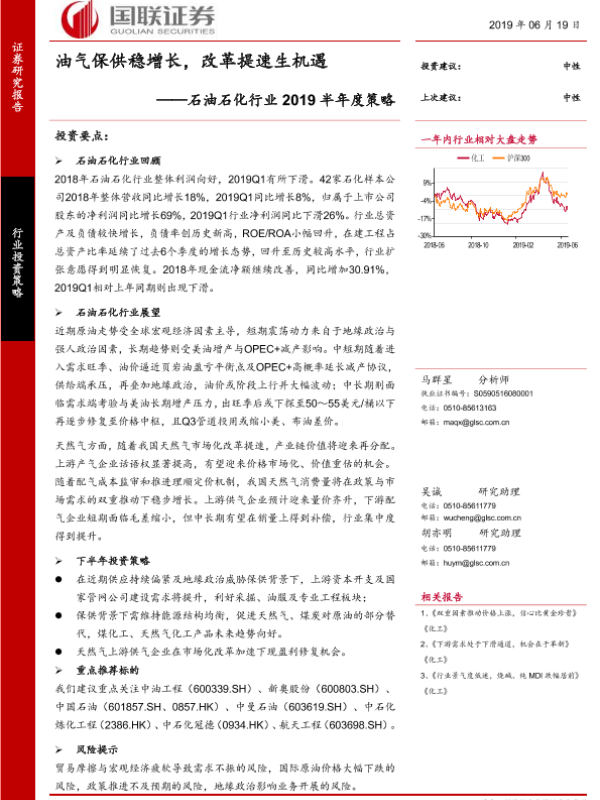 【国联证券】【20190619】石油石化行业2019半年度策略:油气保供稳增长,改革提速生机遇-27页