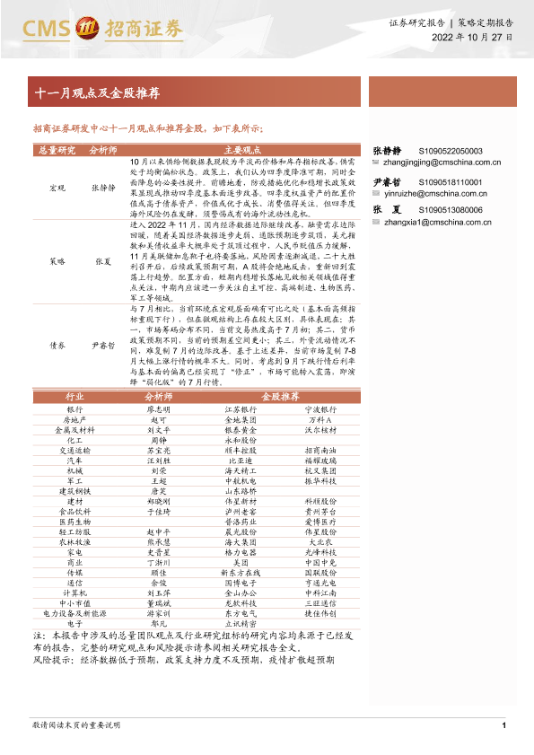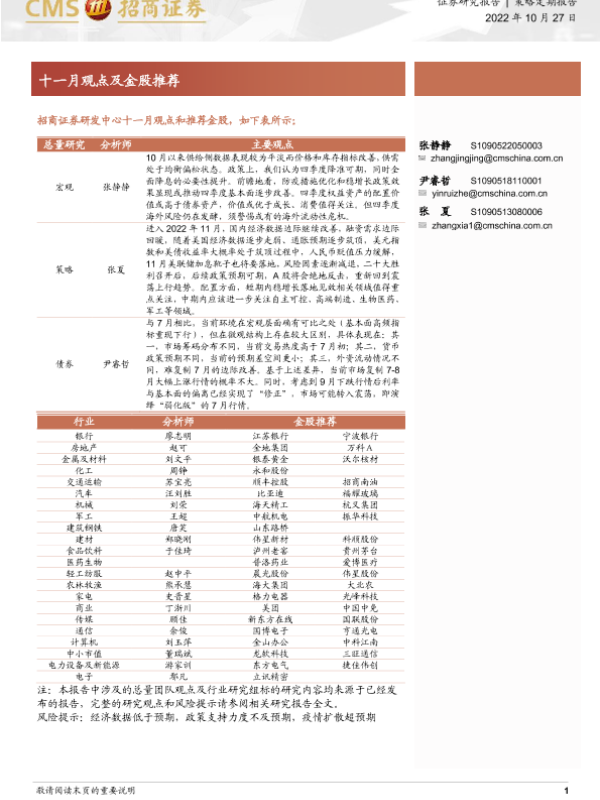 【海通证券】【20221027】十一月观点及金股推荐-26页
