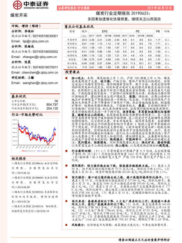 【中泰证券】【20190623】20190623-中泰证券-煤炭行业定期报告:多因素加速催化估值修复,继续关注山西国改-15页