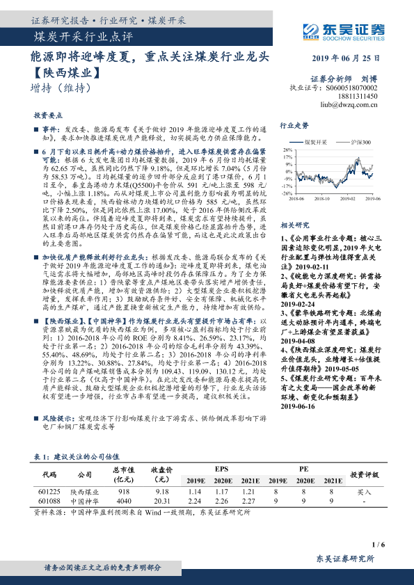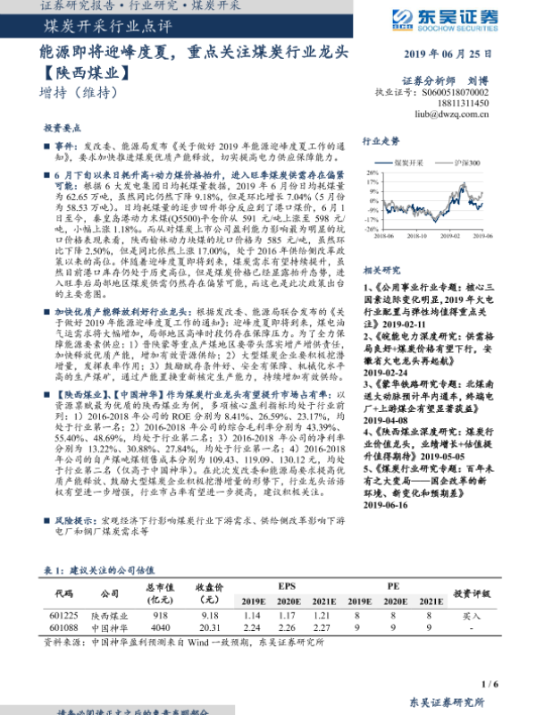 【东吴证券】【20190625】煤炭开采行业点评:能源即将迎峰度夏,重点关注煤炭行业龙头【陕西煤业】-6页