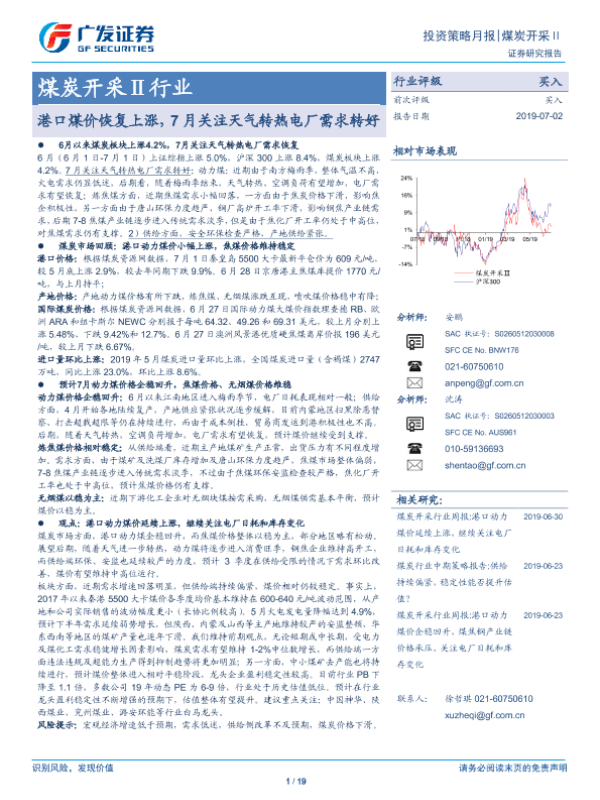 【广发证券】【20190702】港口煤价恢复上涨,7月关注天气转热电厂需求转好-19页