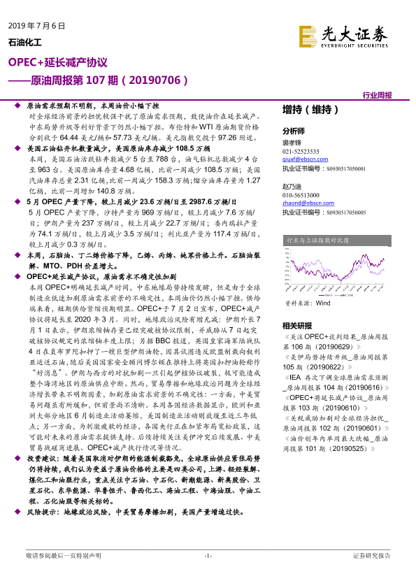 【光大证券】【20190706】原油周报第107期:OPEC+延长减产协议-12页