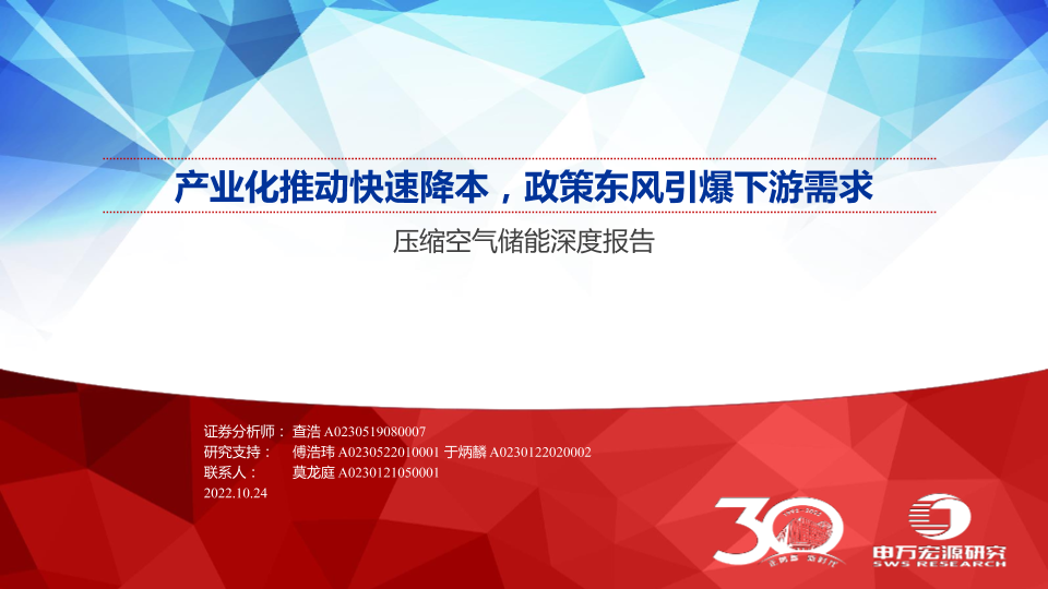 【申万宏源】【20221024】压缩空气储能行业深度报告:产业化推动快速降本,政策东风引爆下游需求-39页
