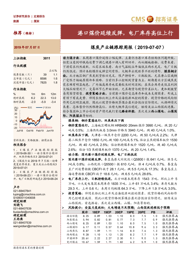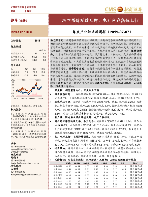【海通证券】【20190707】煤炭产业链跟踪周报:港口煤价延续反弹,电厂库存高位上行-21页