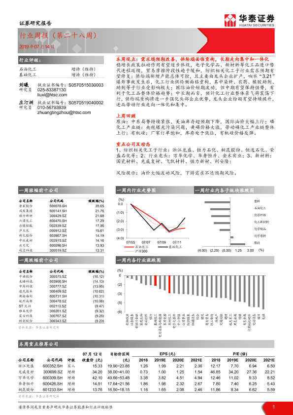 【华泰证券】【20190714】20190714-华泰证券-石油化工行业周报(第二十八周)-12页