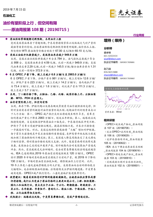 【光大证券】【20190715】油价有望阶段上行,但空间有限-12页