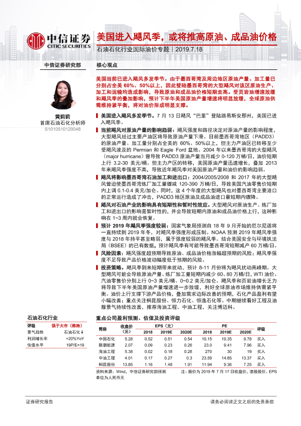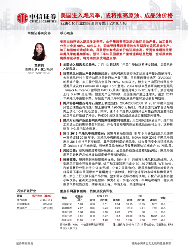 【中信证券】【20190718】美国进入飓风季,或将推高原油、成品油价格-17页