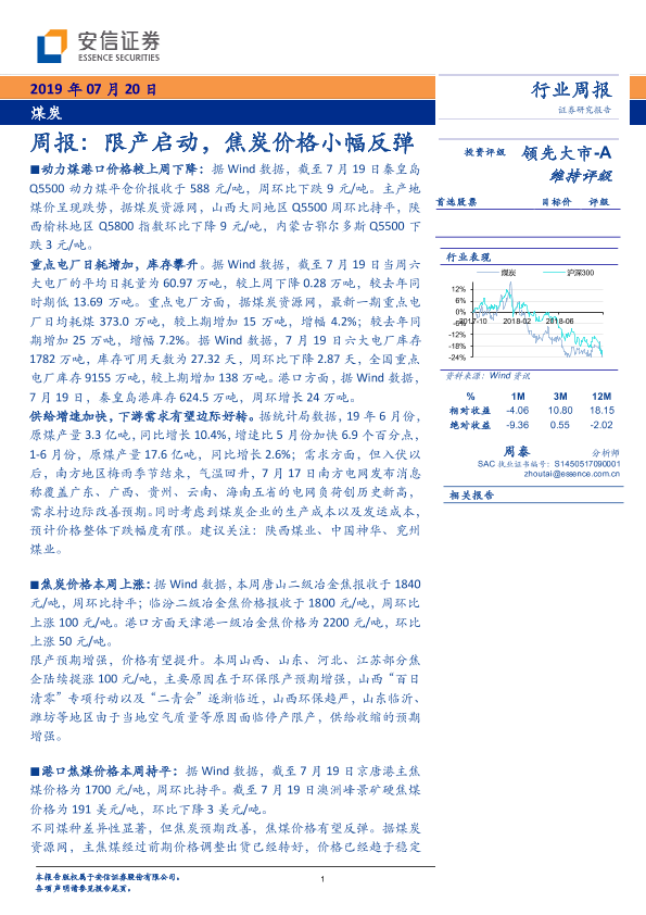 【安信证券】【20190720】20190720-安信证券-煤炭行业周报:限产启动,焦炭价格小幅反弹-24页
