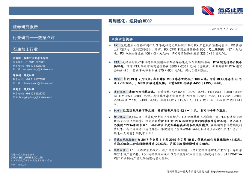 【信达证券】【20190722】20190722-信达证券-石油加工行业每周炼化:逆势的MEG?-7页