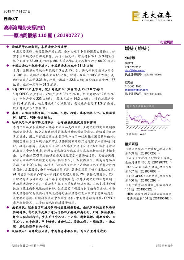 【光大证券】【20190727】原油周报第110期:波斯湾局势支撑油价-12页