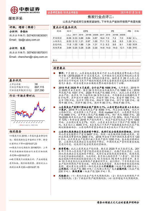 【中泰证券】【20190726】焦炭行业点评二:山东去产能或将引发焦炭紧缺性,下半年去产能和环保限产有望共振-3页