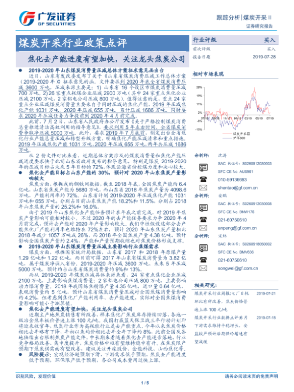 【广发证券】【20190728】煤炭开采行业政策点评:焦化去产能进度有望加快,关注龙头焦炭公司-5页