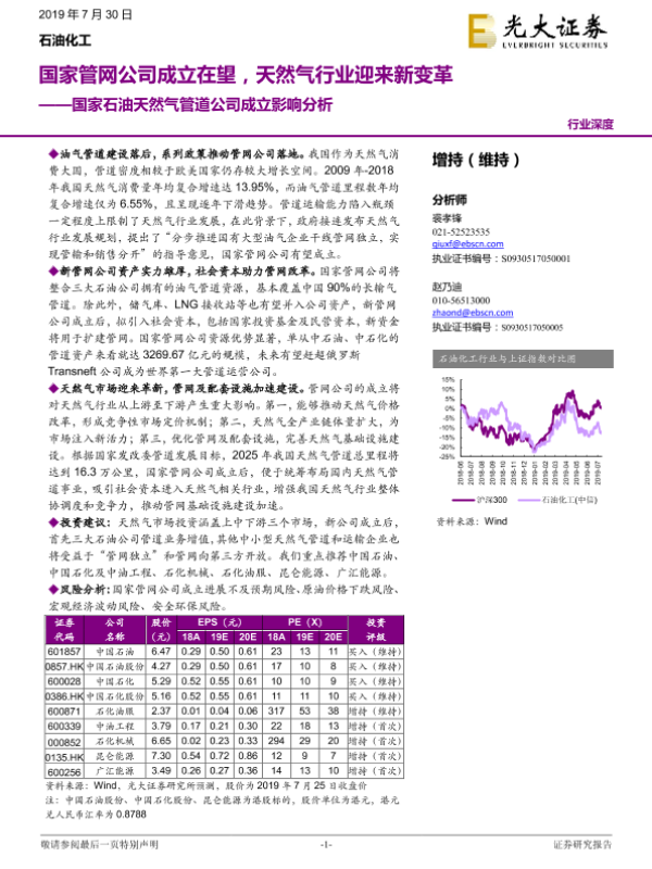 【光大证券】【20190730】国家石油天然气管道公司成立影响分析:国家管网公司成立在望,天然气行业迎来新变革-36页