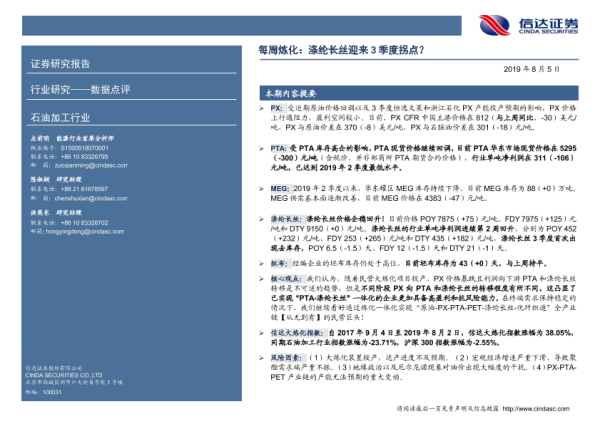 【信达证券】【20190805】20190805-信达证券-石油加工行业数据点评:每周炼化:涤纶长丝迎来3季度拐点?-7页