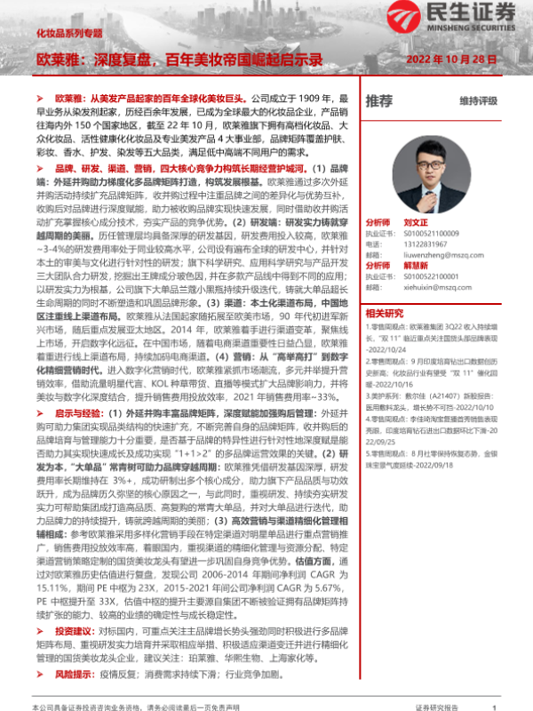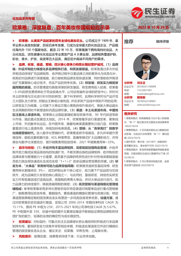 【民生证券】【20221028】商贸零售行业化妆品系列专题:欧莱雅,深度复盘,百年美妆帝国崛起启示录-32页