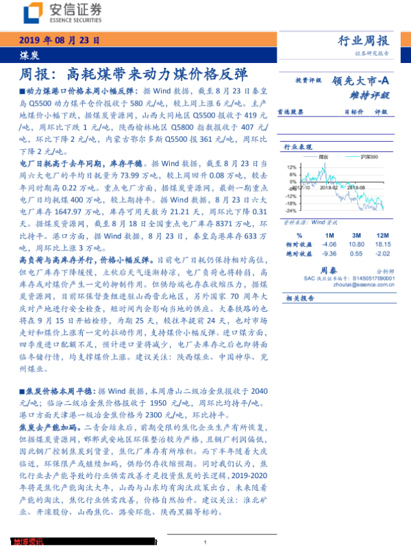 【安信证券】【20190823】20190823-安信证券-煤炭周报:高耗煤带来动力煤价格反弹-25页