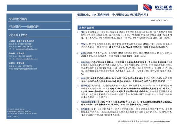 【信达证券】【20190826】每周炼化:PTA盈利连续一个月维持250元 吨的水平!-7页