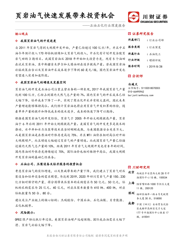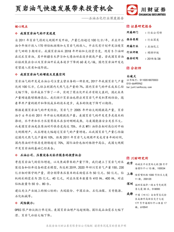 【川财证券】【20190828】石油石化行业深度报告:页岩油气快速发展带来投资机会-25页