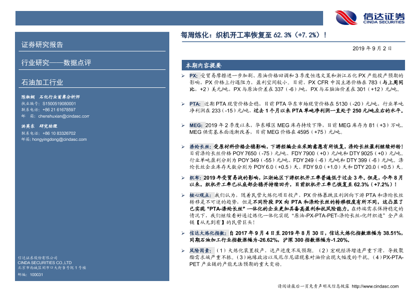 【信达证券】【20190902】20190902-信达证券-石油加工行业每周炼化:织机开工率恢复至62.3%(+7.2%)!-7页
