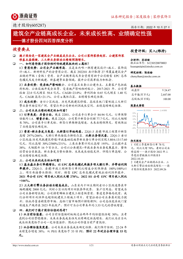 【浙商证券】【20221027】四问四答深度分析:建筑全产业链高成长企业,未来成长性高、业绩确定性强-21页