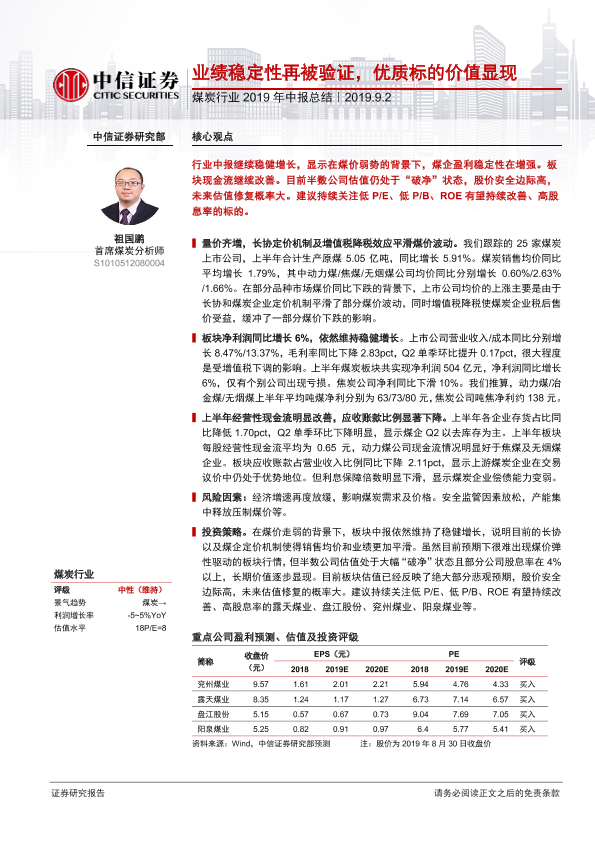 【中信证券】【20190902】煤炭行业2019年中报总结:业绩稳定性再被验证,优质标的价值显现-22页