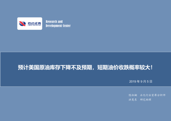 【信达证券】【20190905】2019年第三十四期专题报告:预计美国原油库存下降不及预期,短期油价收跌概率较大!-8页