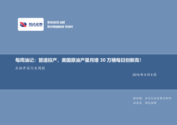 【信达证券】【20190906】20190906-信达证券-石油开采行业周报:每周油记-管道投产,美国原油产量月增30万桶每日创新高!-8页