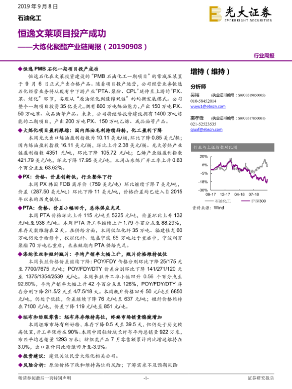 【光大证券】【20190908】大炼化聚酯产业链周报:恒逸文莱项目投产成功-13页