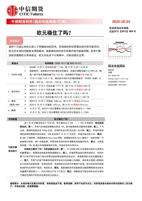 【中信期货】【20221023】固定收益周报(汇率):欧元稳住了吗?-22页