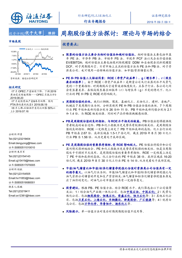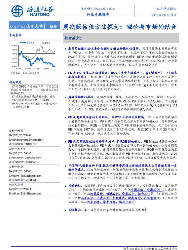 【海通证券】【20190909】20190909-海通证券-石油化工行业专题报告:周期股估值方法探讨:理论与市场的结合-23页