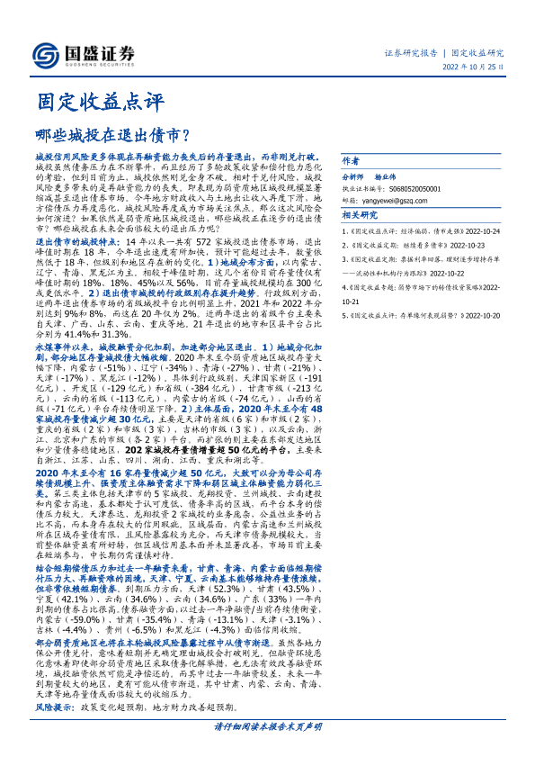 【国盛证券】【20221025】固定收益点评:哪些城投在退出债市?-19页