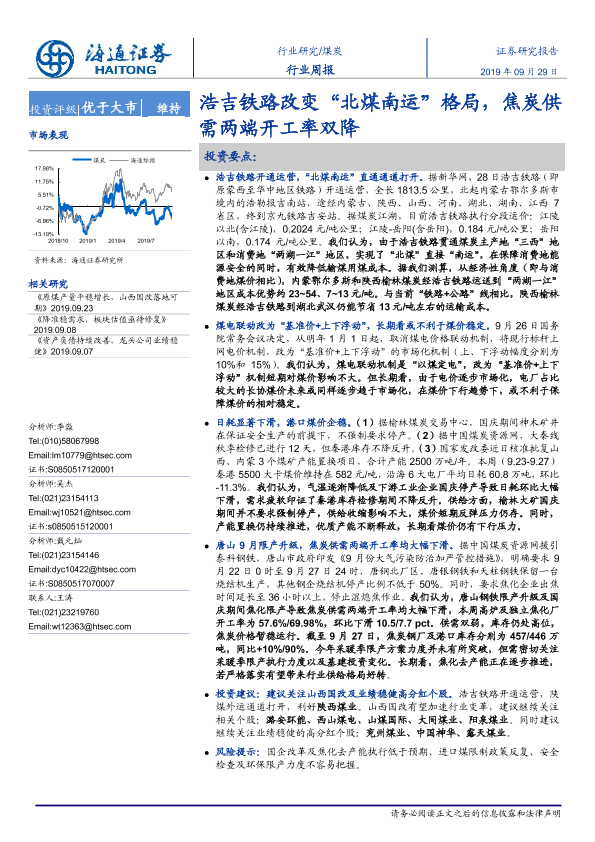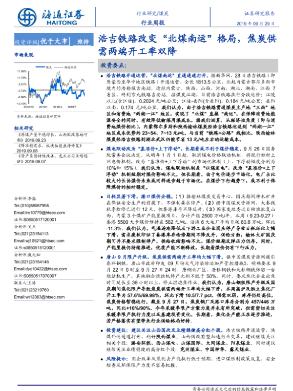 【海通证券】【20190929】煤炭行业周报:浩吉铁路改变“北煤南运”格局,焦炭供需两端开工率双降-2页