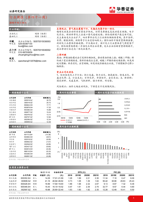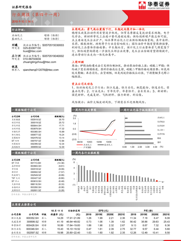 【华泰证券】【20191014】20191014-华泰证券-石油化工行业周报(第四十一周)-11页