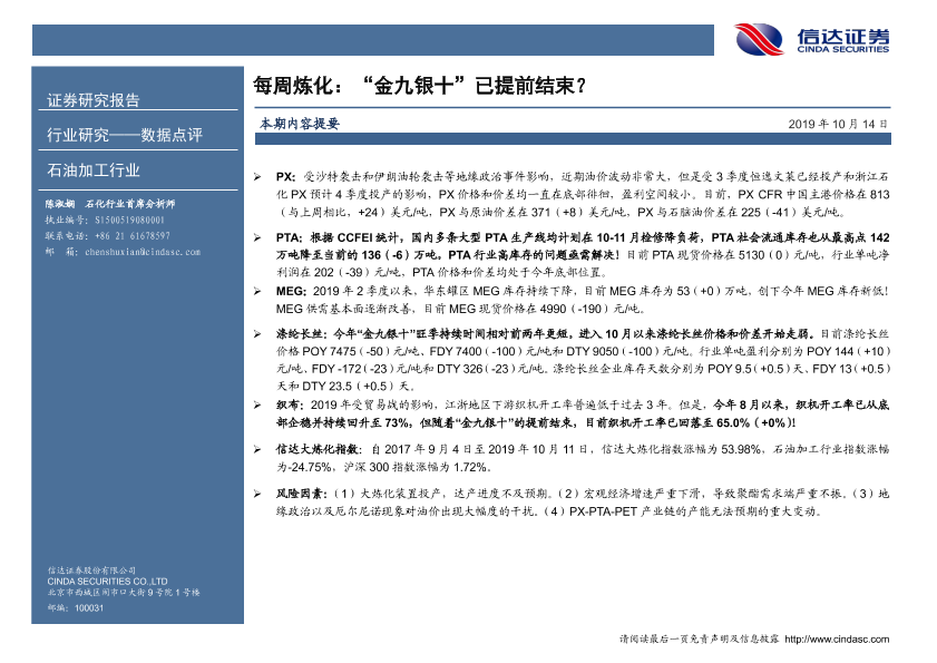 【信达证券】【20191014】20191014-信达证券-石油加工行业数据点评:每周炼化:“金九银十”已提前结束?-7页