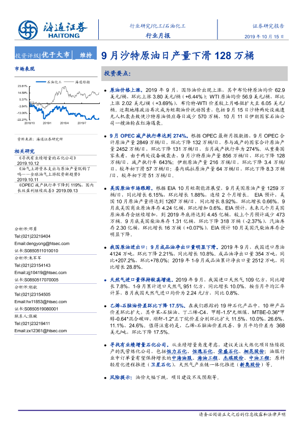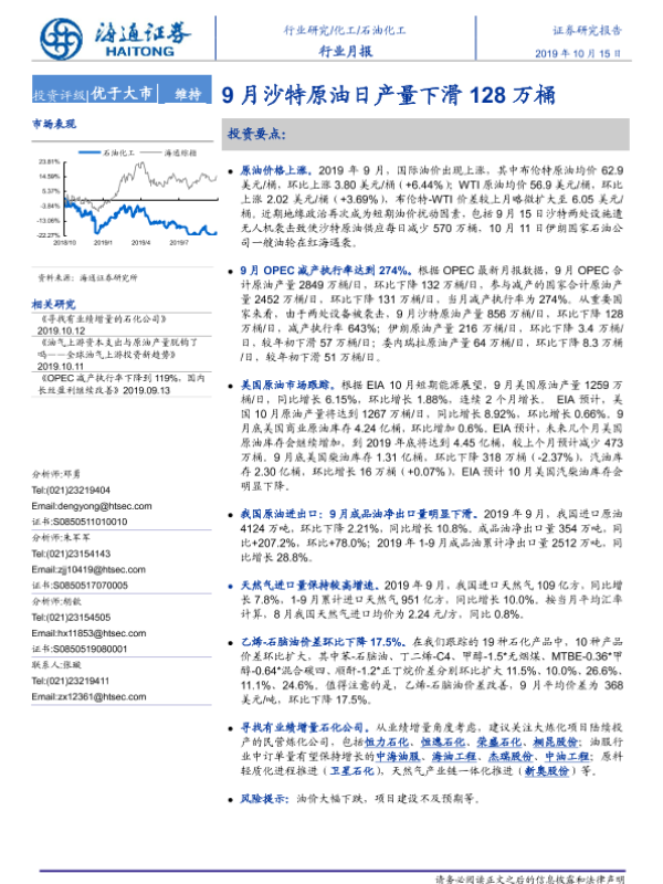 【海通证券】【20191015】20191015-海通证券-石油化工行业月报:9月沙特原油日产量下滑128万桶-10页