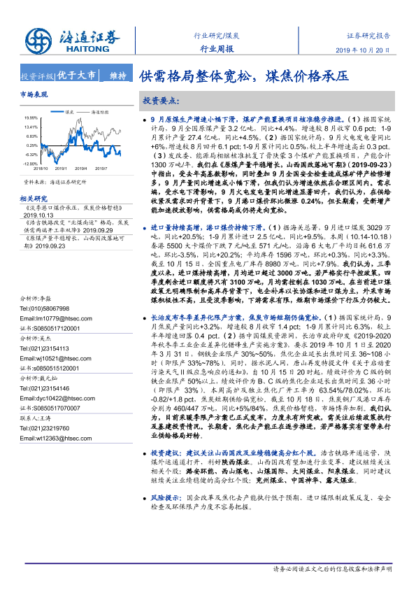 【海通证券】【20191020】20191020-海通证券-煤炭行业周报:供需格局整体宽松,煤焦价格承压-2页