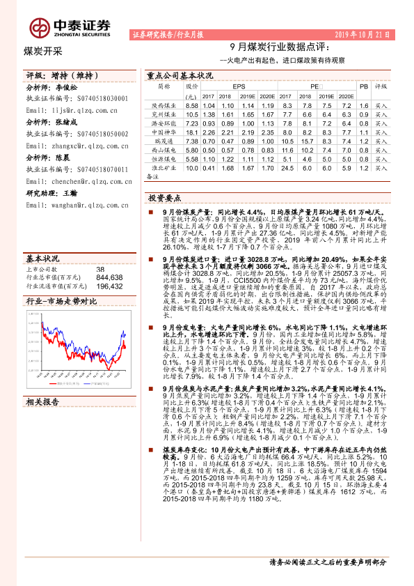 【中泰证券】【20191021】9月煤炭行业数据点评:火电产出有起色,进口煤政策有待观察-6页