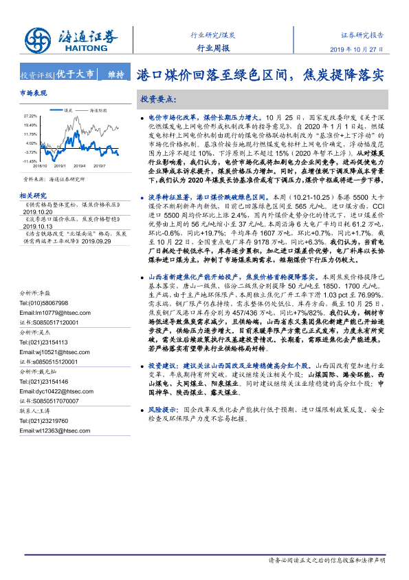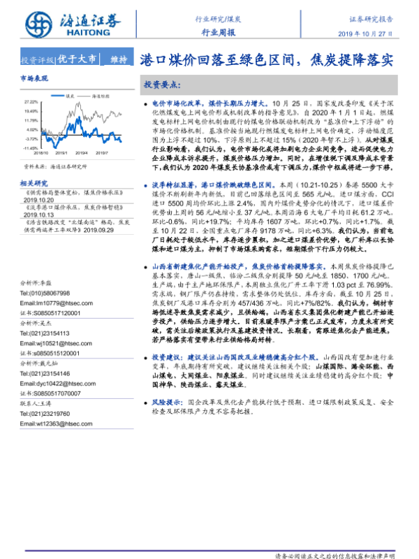 【海通证券】【20191027】20191027-海通证券-煤炭行业周报:港口煤价回落至绿色区间,焦炭提降落实-2页