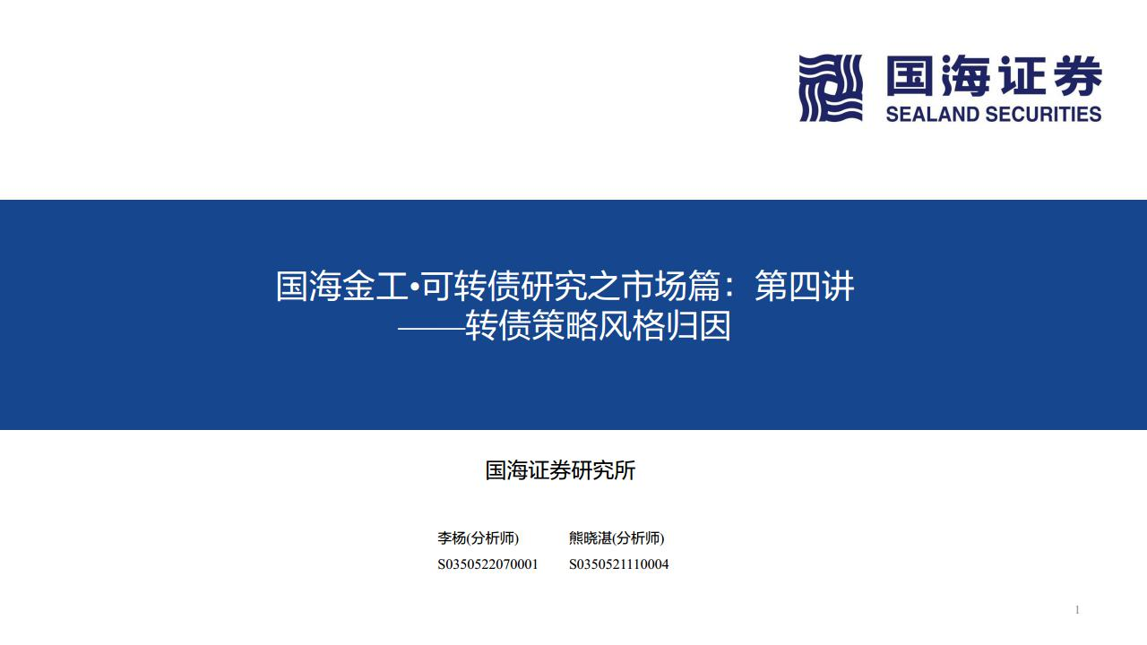 【国海证券】【20221026】国海金工·可转债研究之市场篇:第四讲,转债策略风格归因-26页