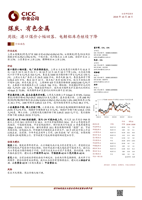 【中金公司】【20191028】煤炭、有色金属周报:港口煤价小幅回落,电解铝库存继续下降-15页