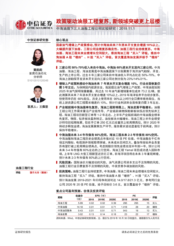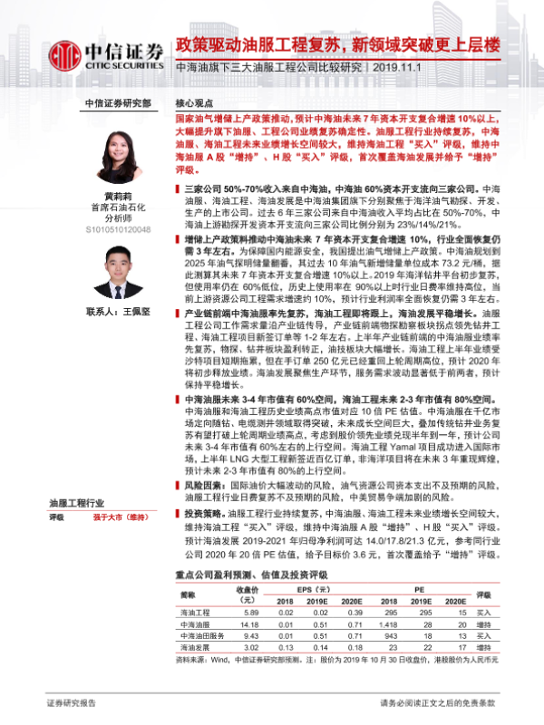 【中信证券】【20191101】中海油旗下三大油服工程公司比较研究:政策驱动油服工程复苏,新领域突破更上层楼-44页