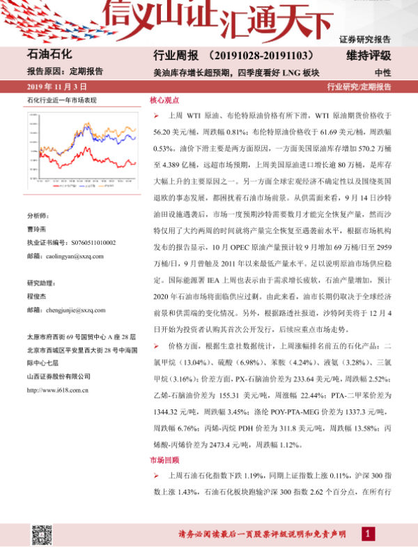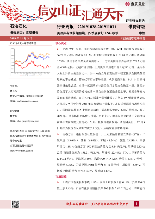 【山西证券】【20191103】20191103-山西证券-石油石化行业周报:美油库存增长超预期,四季度看好LNG板块-14页