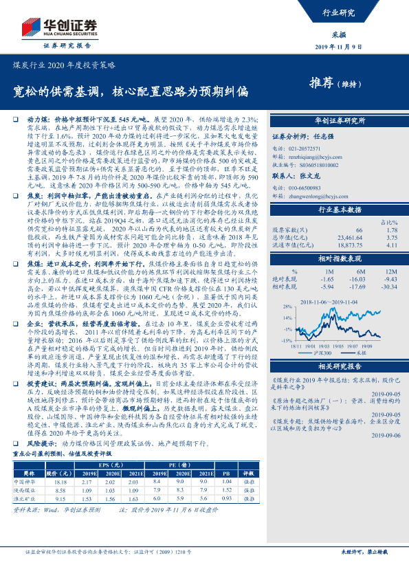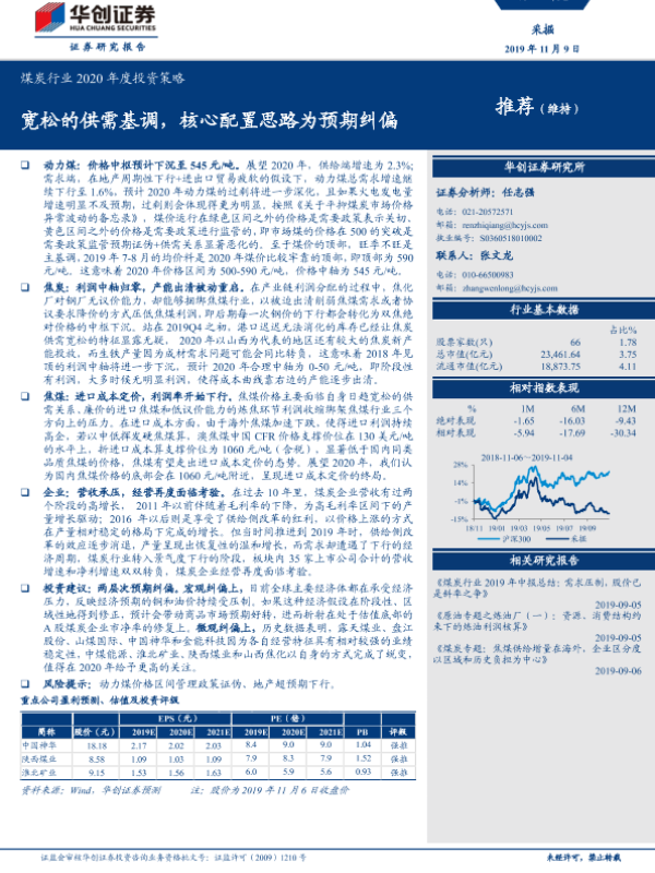 【华创证券】【20191109】煤炭行业2020年度投资策略:宽松的供需基调,核心配置思路为预期纠偏-15页