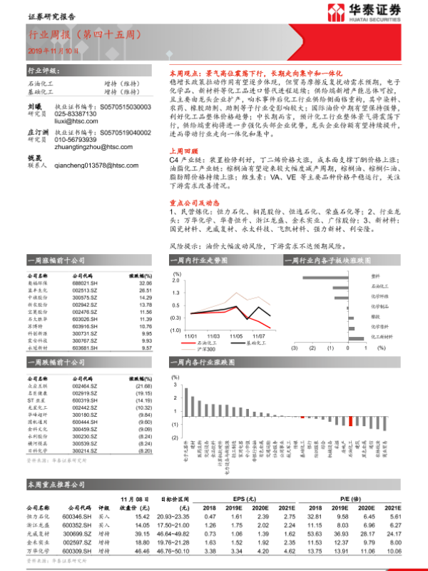 【华泰证券】【20191110】20191110-华泰证券-石油化工行业周报(第四十五周)-11页