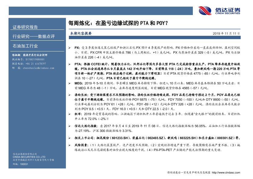 【信达证券】【20191111】每周炼化:在盈亏边缘试探的PTA和POY?-7页