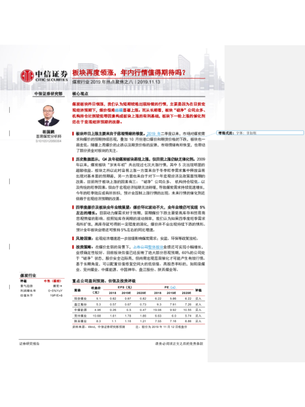 宏观经济 投资策略 板块分析 煤炭行业 证券研究