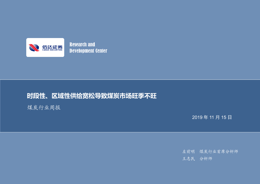 【信达证券】【20191115】20191115-信达证券-煤炭行业周报:时段性、区域性供给宽松导致煤炭市场旺季不旺-24页